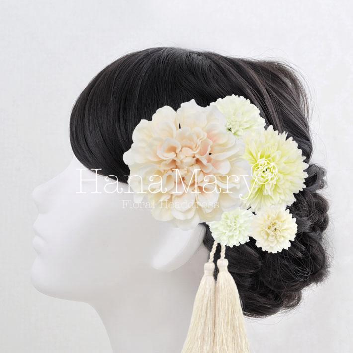 HanaMaryの髪飾りは生花をリアルに再現したアートフラワーと呼ばれるハイクオリティーな造花を使用しています。耐久性に優れ、成人式・卒業式やウェディングなどに何度でも繰り返し使用することができます。