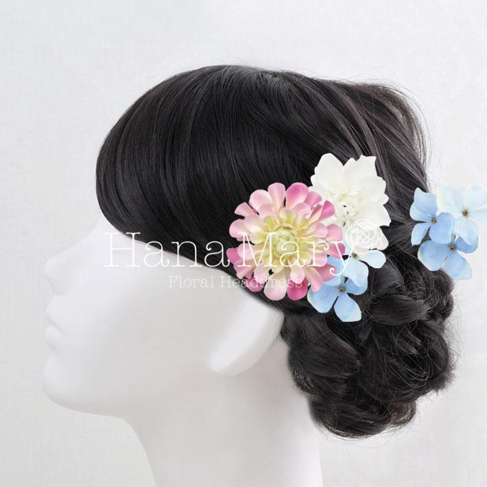 その日のヘアスタイルによって自由に一輪一輪配置できます。お花の数が多い場合でも、アメピンを追加して簡単にしっかりと固定できます。