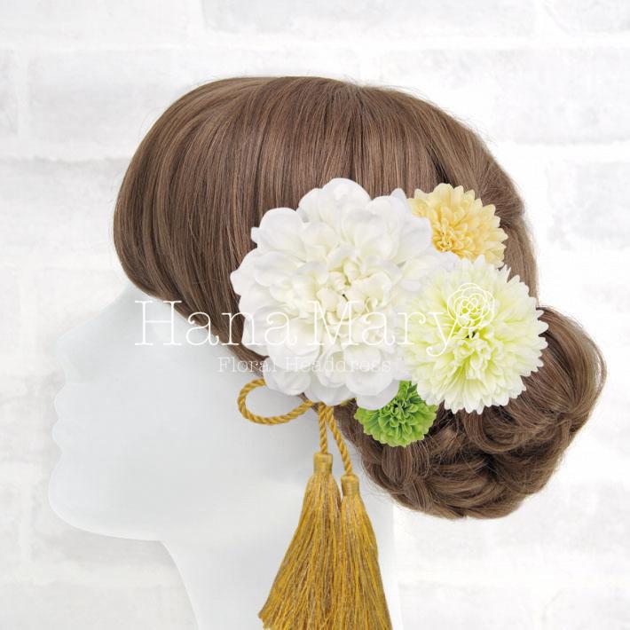 HanaMaryの髪飾りは生花をリアルに再現したアートフラワーと呼ばれるハイクオリティーな造花を使用しています。耐久性に優れ、成人式・卒業式やウェディングなどに何度でも繰り返し使用することができます。