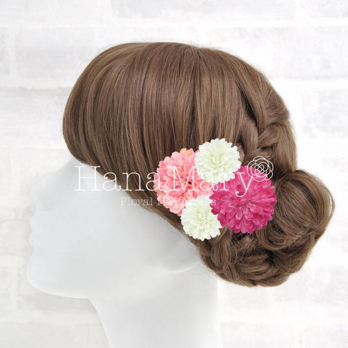 その日のヘアスタイルによって自由に一輪一輪配置できます。お花の数が多い場合でも、アメピンを追加して簡単にしっかりと固定できます。