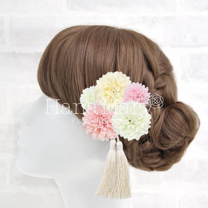 HanaMaryの髪飾りは生花をリアルに再現したアートフラワーと呼ばれるハイクオリティーな造花を使用しています。耐久性に優れ、成人式・卒業式やウェディングなどに何度でも繰り返し使用することができます。