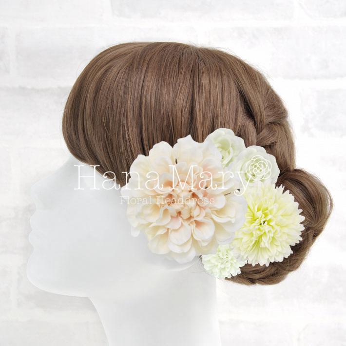 HanaMaryの髪飾りは生花をリアルに再現したアートフラワーと呼ばれるハイクオリティーな造花を使用しています。耐久性に優れ、成人式・卒業式やウェディングなどに何度でも繰り返し使用することができます。