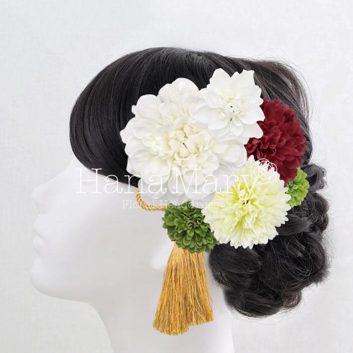 HanaMaryの髪飾りは生花をリアルに再現したアートフラワーと呼ばれるハイクオリティーな造花を使用しています。耐久性に優れ、成人式・卒業式やウェディングなどに何度でも繰り返し使用することができます。