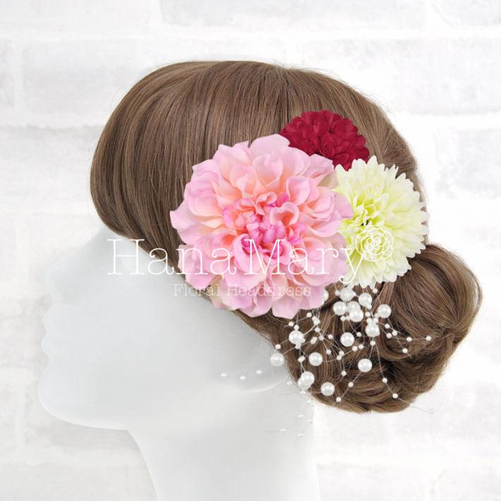 HanaMaryの髪飾りは生花をリアルに再現したアートフラワーと呼ばれるハイクオリティーな造花を使用しています。耐久性に優れ、成人式・卒業式やウェディングなどに何度でも繰り返し使用することができます。