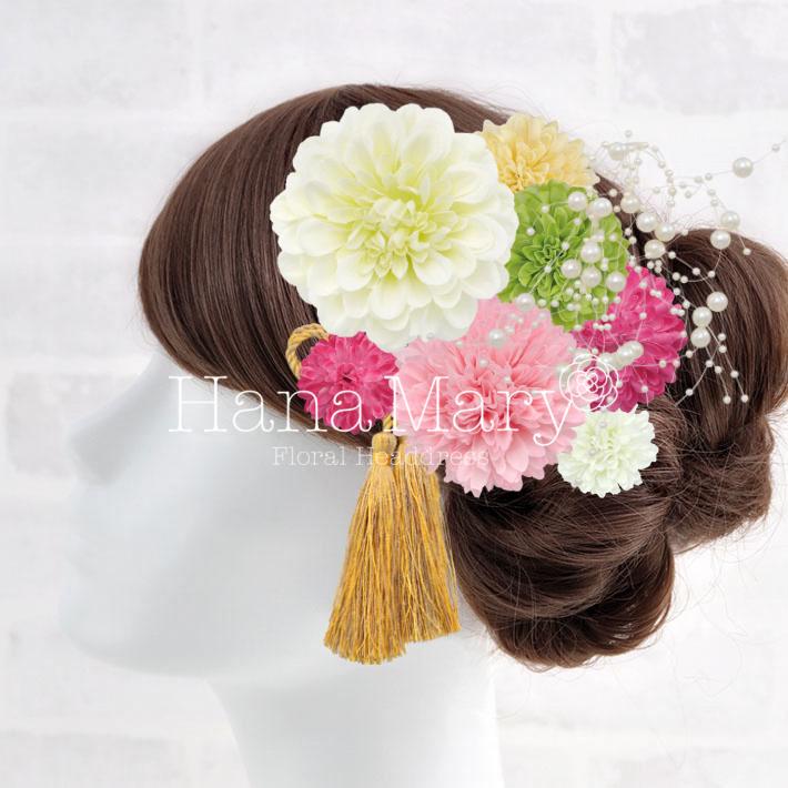 HanaMaryの髪飾りは生花をリアルに再現したアートフラワーと呼ばれるハイクオリティーな造花を使用しています。耐久性に優れ、成人式・卒業式やウェディングなどに何度でも繰り返し使用することができます。