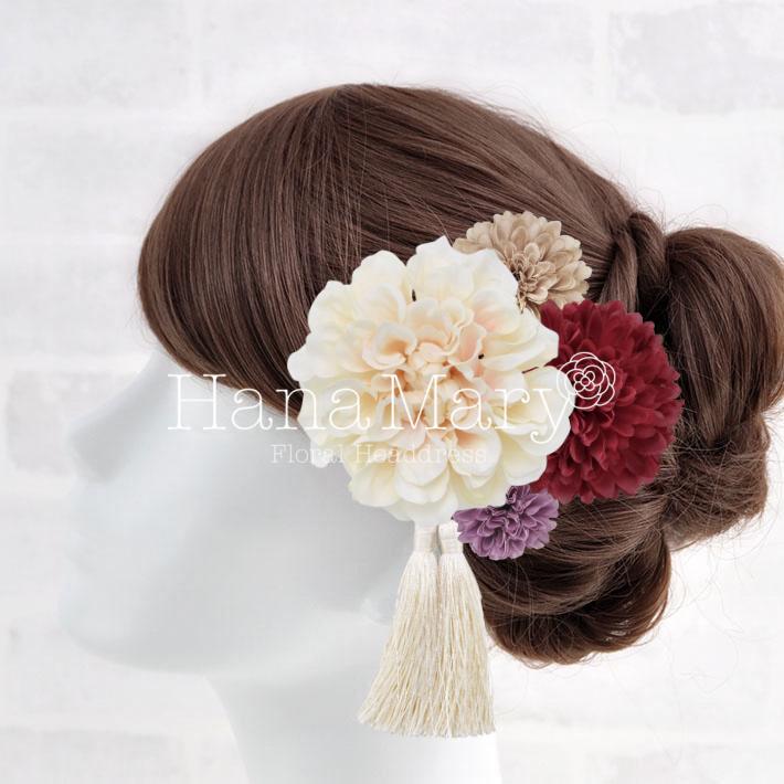 HanaMaryの髪飾りは生花をリアルに再現したアートフラワーと呼ばれるハイクオリティーな造花を使用しています。耐久性に優れ、成人式・卒業式やウェディングなどに何度でも繰り返し使用することができます。