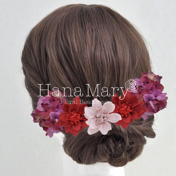 HanaMaryの髪飾りは生花をリアルに再現したアートフラワーと呼ばれるハイクオリティーな造花を使用しています。耐久性に優れ、成人式・卒業式やウェディングなどに何度でも繰り返し使用することができます。