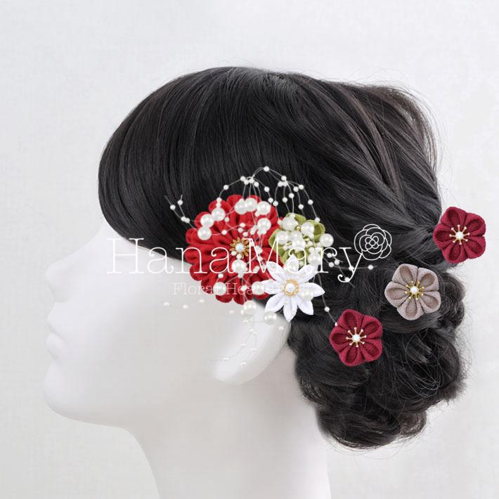 HanaMaryの髪飾りは生花をリアルに再現したアートフラワーと呼ばれるハイクオリティーな造花を使用しています。耐久性に優れ、成人式・卒業式やウェディングなどに何度でも繰り返し使用することができます。