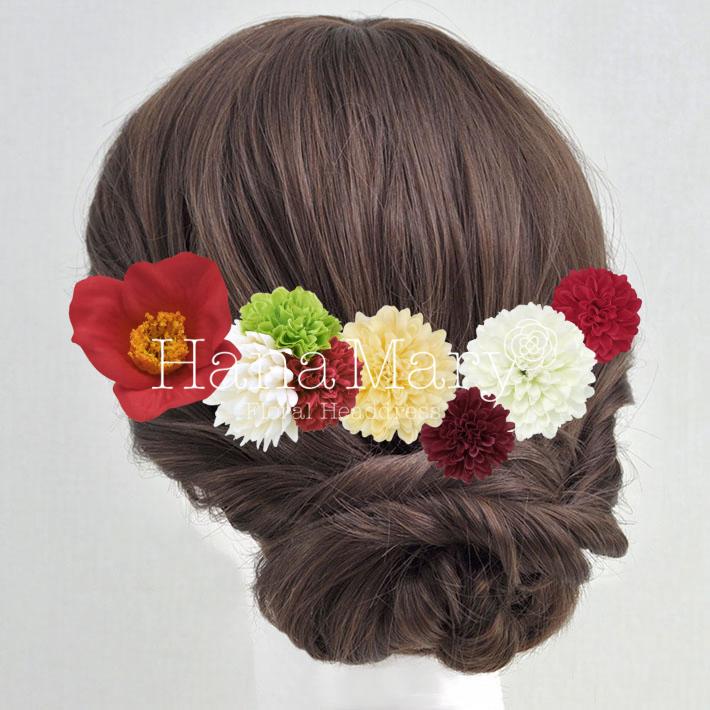 その日のヘアスタイルによって自由に一輪一輪配置できます。お花の数が多い場合でも、アメピンを追加して簡単にしっかりと固定できます。