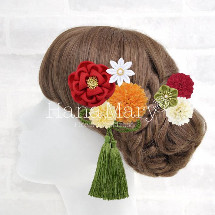 HanaMaryの髪飾りは生花をリアルに再現したアートフラワーと呼ばれるハイクオリティーな造花を使用しています。耐久性に優れ、成人式・卒業式やウェディングなどに何度でも繰り返し使用することができます。