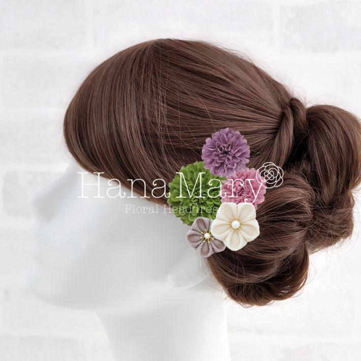 その日のヘアスタイルによって自由に一輪一輪配置できます。お花の数が多い場合でも、アメピンを追加して簡単にしっかりと固定できます。