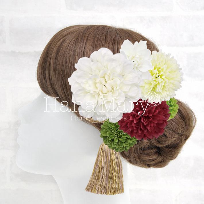 HanaMaryの髪飾りは生花をリアルに再現したアートフラワーと呼ばれるハイクオリティーな造花を使用しています。耐久性に優れ、成人式・卒業式やウェディングなどに何度でも繰り返し使用することができます。