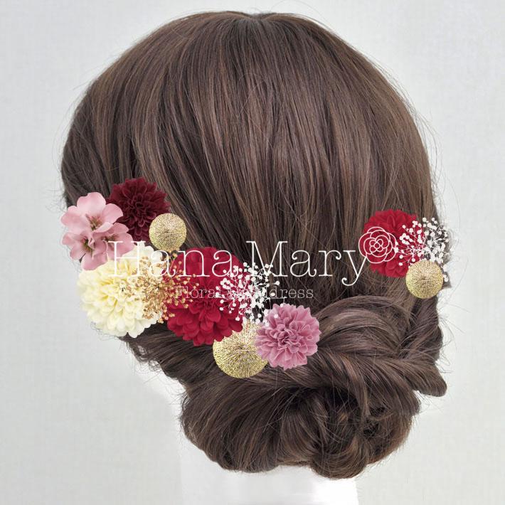 HanaMaryの髪飾りは生花をリアルに再現したアートフラワーと呼ばれるハイクオリティーな造花を使用しています。耐久性に優れ、成人式・卒業式やウェディングなどに何度でも繰り返し使用することができます。