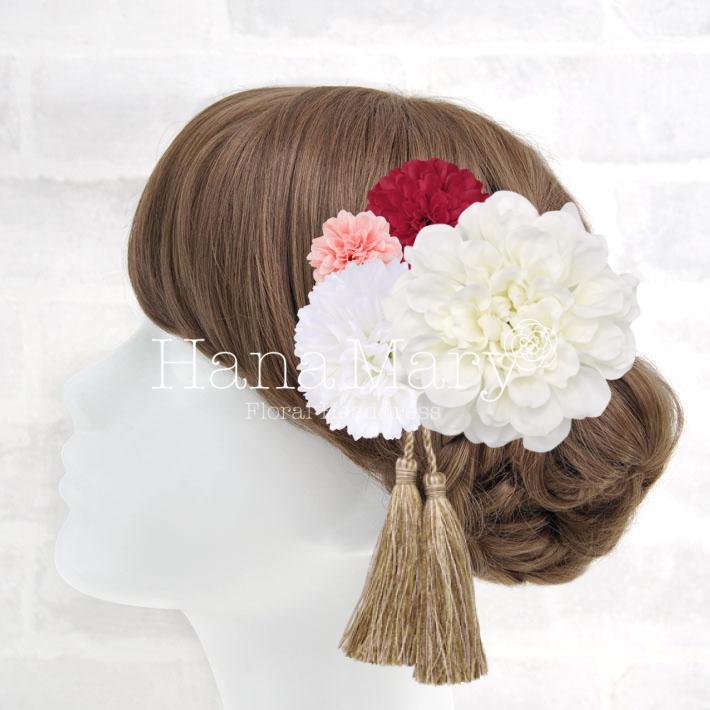 HanaMaryの髪飾りは生花をリアルに再現したアートフラワーと呼ばれるハイクオリティーな造花を使用しています。耐久性に優れ、成人式・卒業式やウェディングなどに何度でも繰り返し使用することができます。