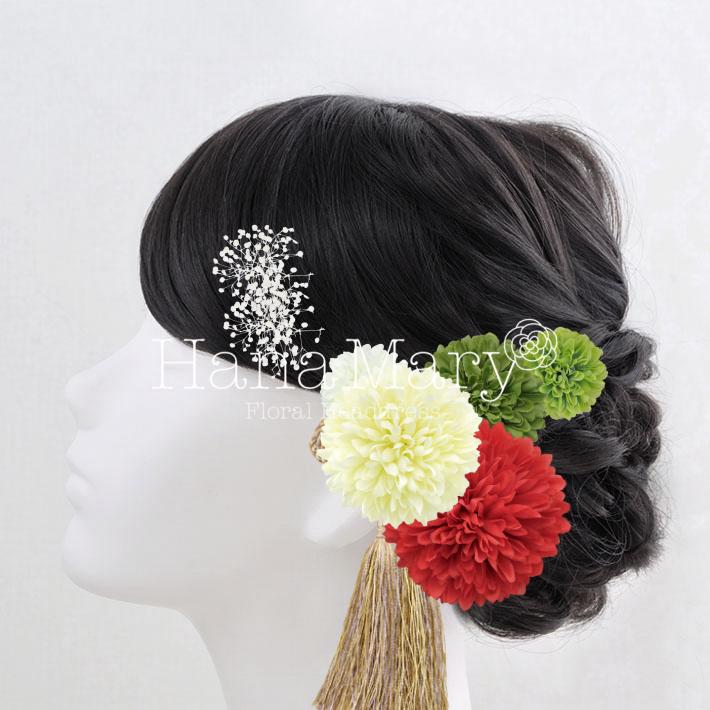 HanaMaryの髪飾りは生花をリアルに再現したアートフラワーと呼ばれるハイクオリティーな造花を使用しています。耐久性に優れ、成人式・卒業式やウェディングなどに何度でも繰り返し使用することができます。