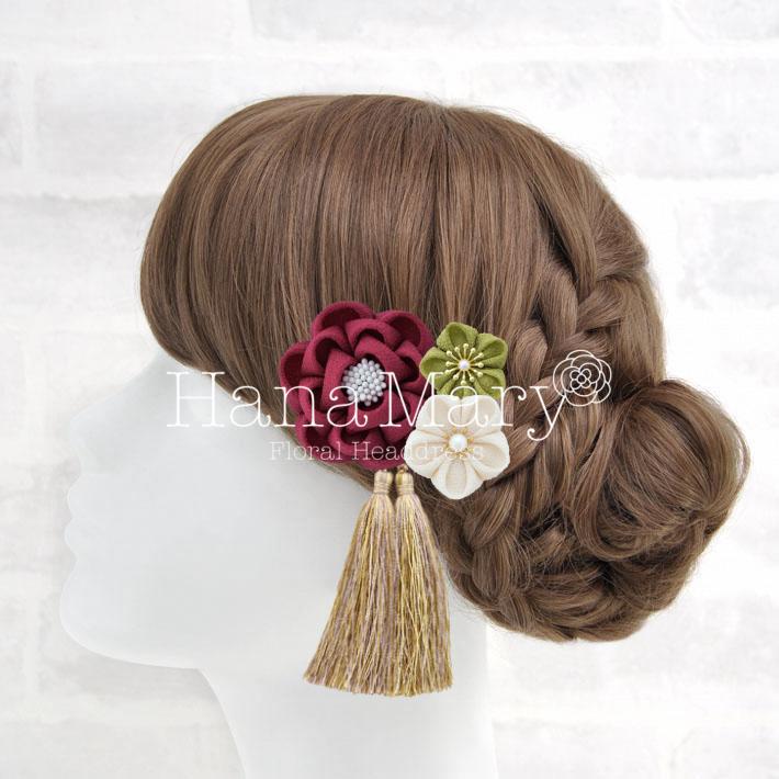 つまみ細工 椿_ボルドー