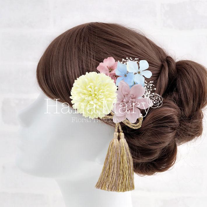 HanaMaryの髪飾りは生花をリアルに再現したアートフラワーと呼ばれるハイクオリティーな造花を使用しています。耐久性に優れ、成人式・卒業式やウェディングなどに何度でも繰り返し使用することができます。