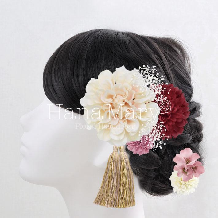 HanaMaryの髪飾りは生花をリアルに再現したアートフラワーと呼ばれるハイクオリティーな造花を使用しています。耐久性に優れ、成人式・卒業式やウェディングなどに何度でも繰り返し使用することができます。