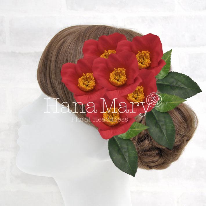 赤の椿の髪飾り