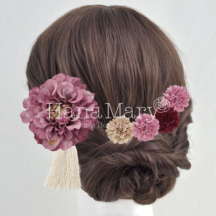 HanaMaryの髪飾りは生花をリアルに再現したアートフラワーと呼ばれるハイクオリティーな造花を使用しています。耐久性に優れ、成人式・卒業式やウェディングなどに何度でも繰り返し使用することができます。