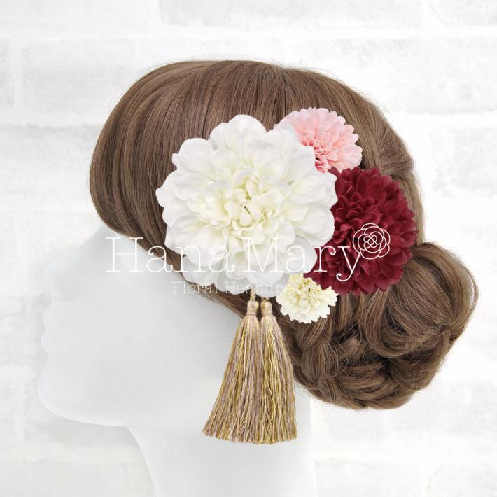 HanaMaryの髪飾りは生花をリアルに再現したアートフラワーと呼ばれるハイクオリティーな造花を使用しています。耐久性に優れ、成人式・卒業式やウェディングなどに何度でも繰り返し使用することができます。