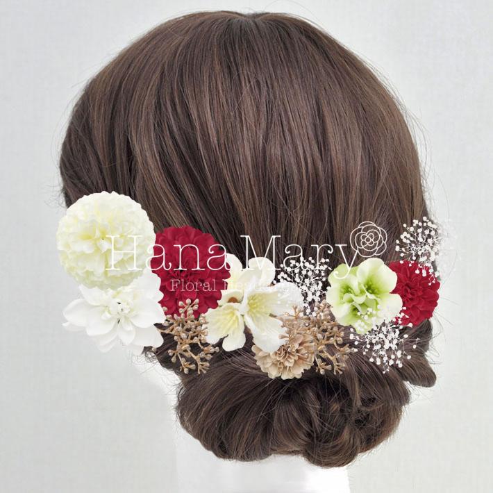 HanaMaryの髪飾りは生花をリアルに再現したアートフラワーと呼ばれるハイクオリティーな造花を使用しています。耐久性に優れ、成人式・卒業式やウェディングなどに何度でも繰り返し使用することができます。