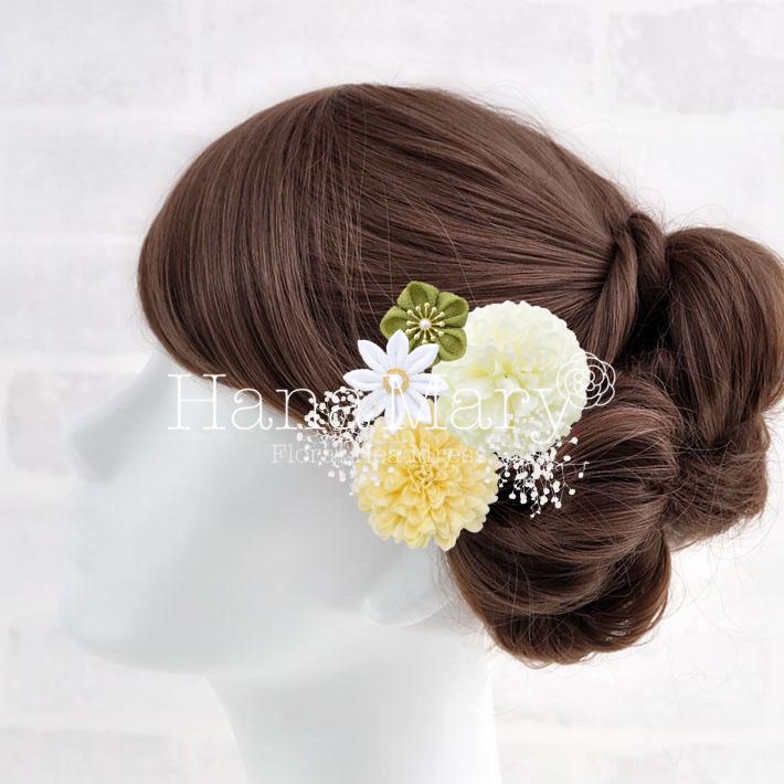 HanaMaryの髪飾りは生花をリアルに再現したアートフラワーと呼ばれるハイクオリティーな造花を使用しています。耐久性に優れ、成人式・卒業式やウェディングなどに何度でも繰り返し使用することができます。