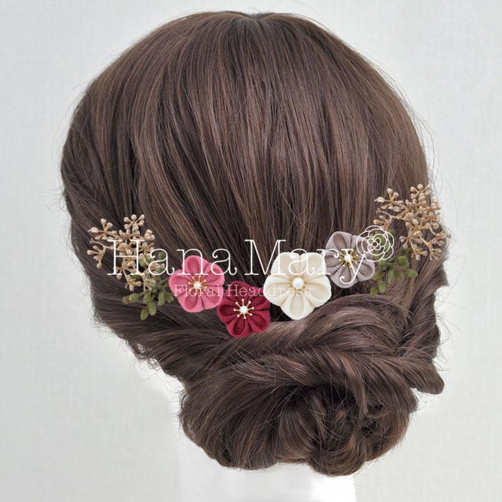 その日のヘアスタイルによって自由に一輪一輪配置できます。お花の数が多い場合でも、アメピンを追加して簡単にしっかりと固定できます。