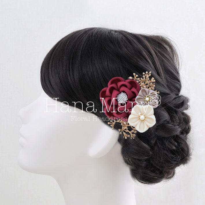 HanaMaryの髪飾りは生花をリアルに再現したアートフラワーと呼ばれるハイクオリティーな造花を使用しています。耐久性に優れ、成人式・卒業式やウェディングなどに何度でも繰り返し使用することができます。