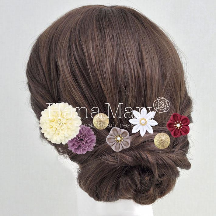 その日のヘアスタイルによって自由に一輪一輪配置できます。お花の数が多い場合でも、アメピンを追加して簡単にしっかりと固定できます。