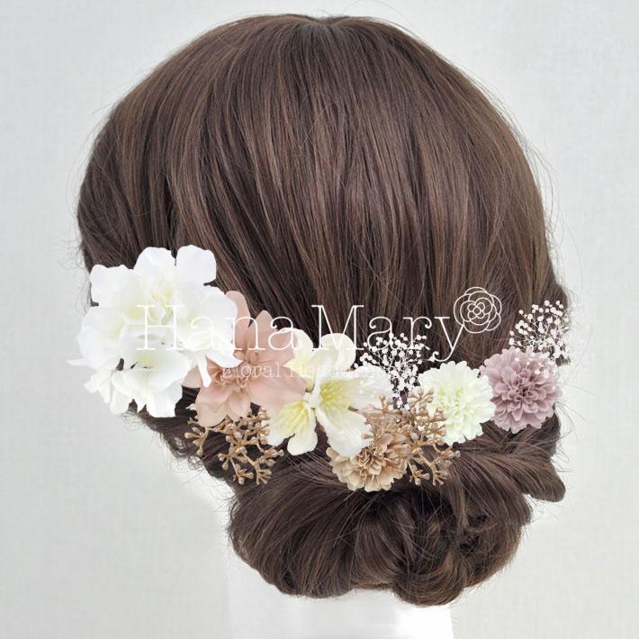 その日のヘアスタイルによって自由に一輪一輪配置できます。お花の数が多い場合でも、アメピンを追加して簡単にしっかりと固定できます。