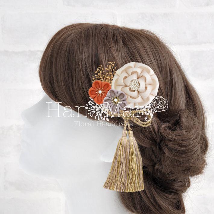 HanaMaryの髪飾りは生花をリアルに再現したアートフラワーと呼ばれるハイクオリティーな造花を使用しています。耐久性に優れ、成人式・卒業式やウェディングなどに何度でも繰り返し使用することができます。
