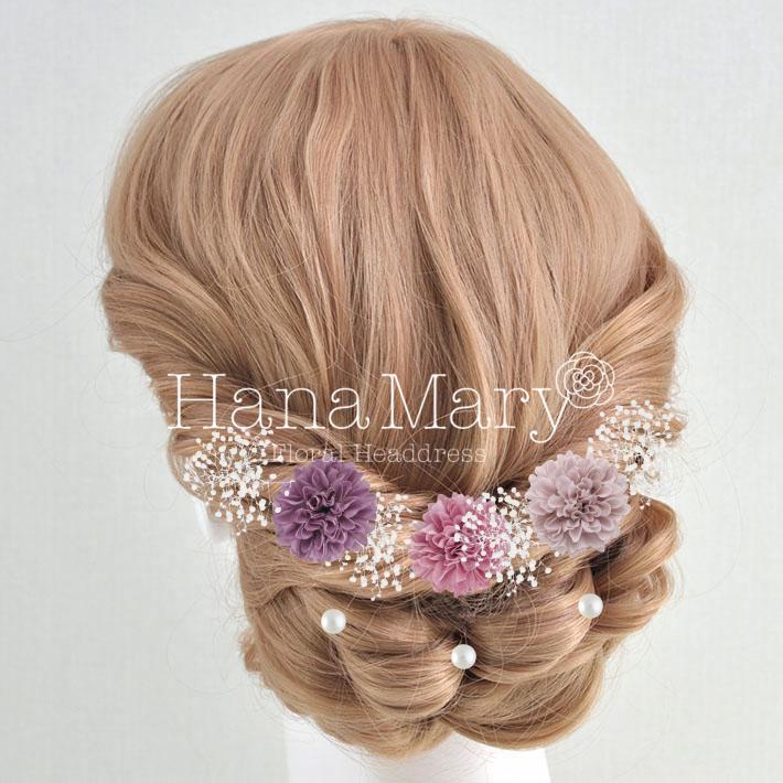 その日のヘアスタイルによって自由に一輪一輪配置できます。お花の数が多い場合でも、アメピンを追加して簡単にしっかりと固定できます。