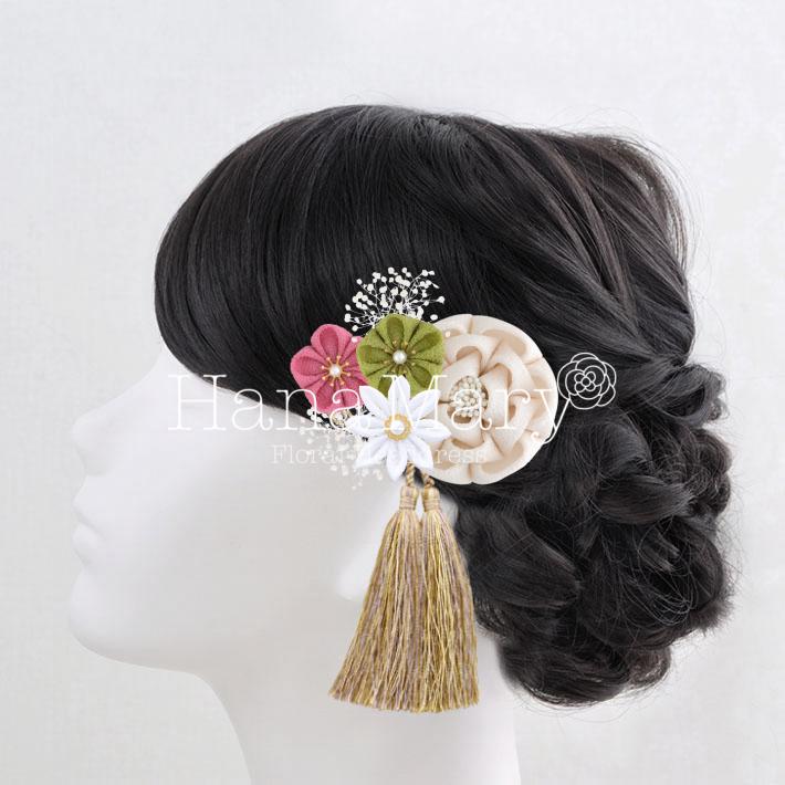 HanaMaryの髪飾りは生花をリアルに再現したアートフラワーと呼ばれるハイクオリティーな造花を使用しています。耐久性に優れ、成人式・卒業式やウェディングなどに何度でも繰り返し使用することができます。