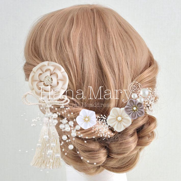 HanaMaryの髪飾りは生花をリアルに再現したアートフラワーと呼ばれるハイクオリティーな造花を使用しています。耐久性に優れ、成人式・卒業式やウェディングなどに何度でも繰り返し使用することができます。