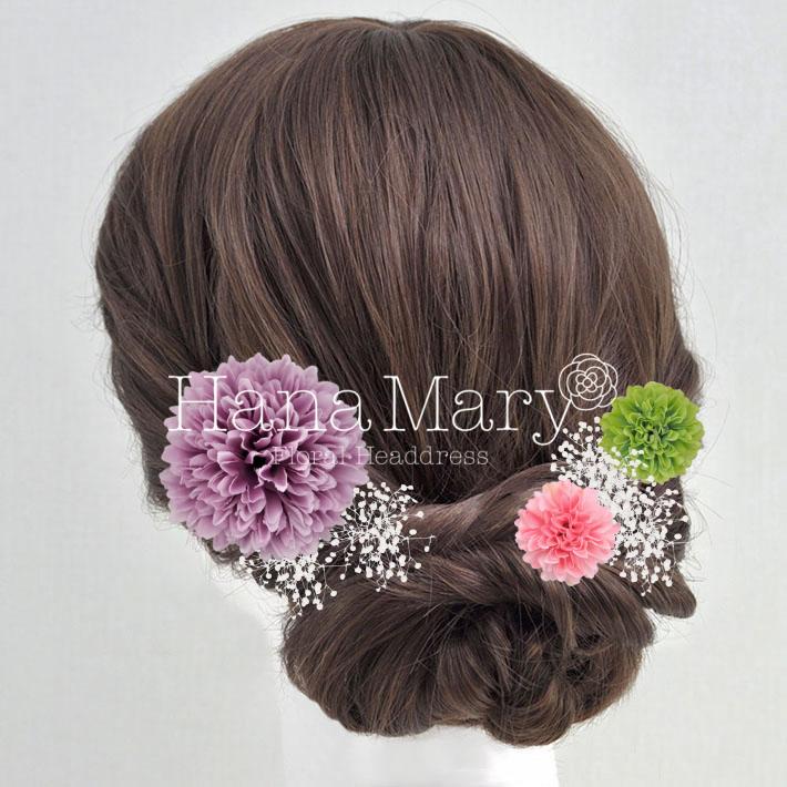 その日のヘアスタイルによって自由に一輪一輪配置できます。お花の数が多い場合でも、アメピンを追加して簡単にしっかりと固定できます。