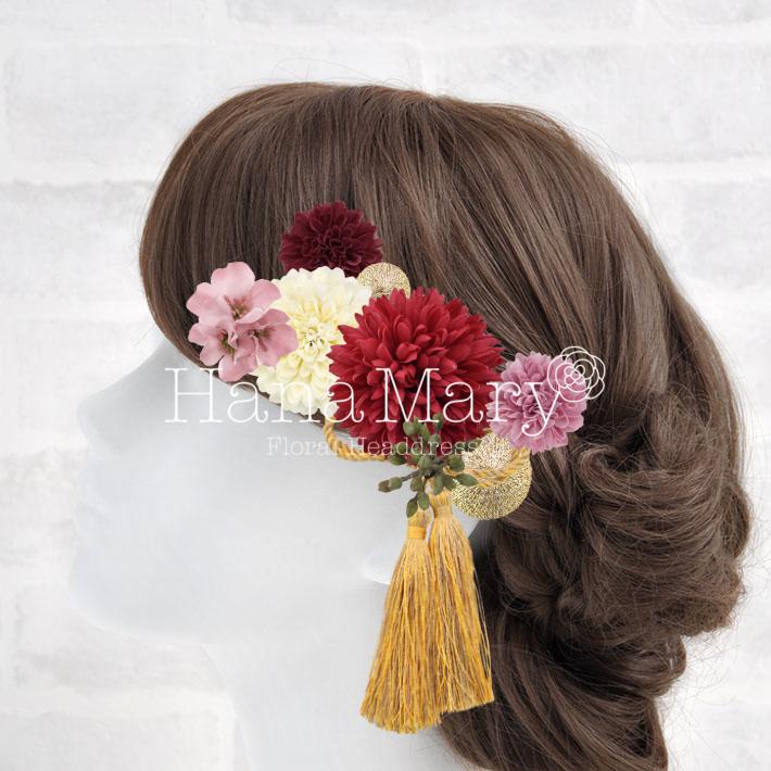 HanaMaryの髪飾りは生花をリアルに再現したアートフラワーと呼ばれるハイクオリティーな造花を使用しています。耐久性に優れ、成人式・卒業式やウェディングなどに何度でも繰り返し使用することができます。