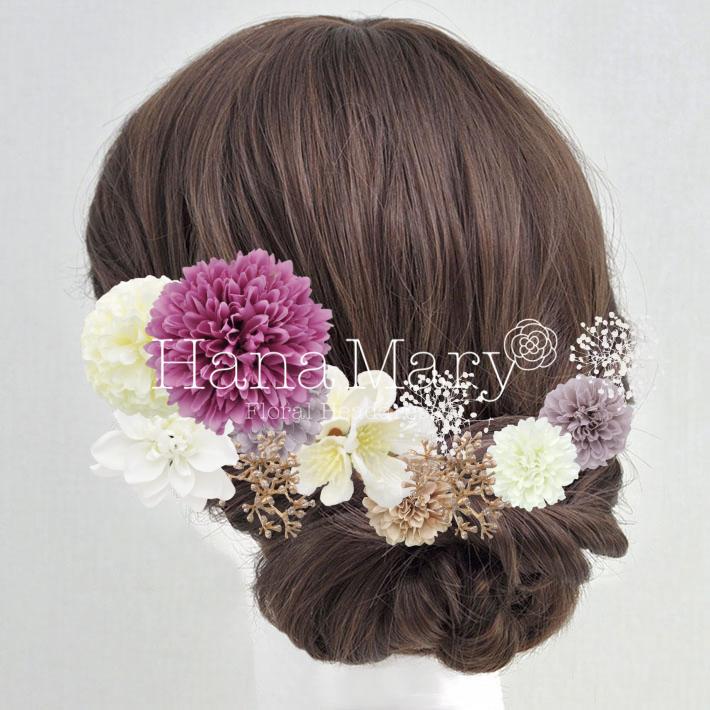 その日のヘアスタイルによって自由に一輪一輪配置できます。お花の数が多い場合でも、アメピンを追加して簡単にしっかりと固定できます。