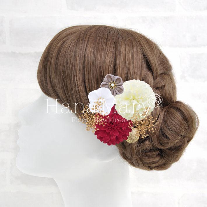 HanaMaryの髪飾りは生花をリアルに再現したアートフラワーと呼ばれるハイクオリティーな造花を使用しています。耐久性に優れ、成人式・卒業式やウェディングなどに何度でも繰り返し使用することができます。