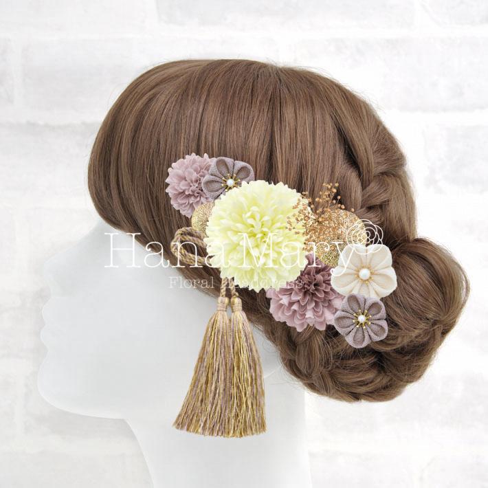 HanaMaryの髪飾りは生花をリアルに再現したアートフラワーと呼ばれるハイクオリティーな造花を使用しています。耐久性に優れ、成人式・卒業式やウェディングなどに何度でも繰り返し使用することができます。