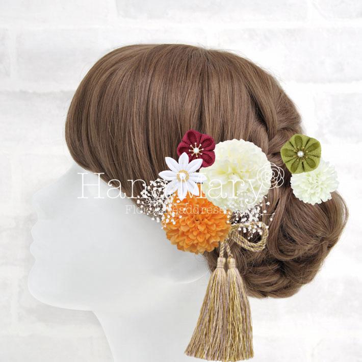 マムとちりめん細工の髪飾り