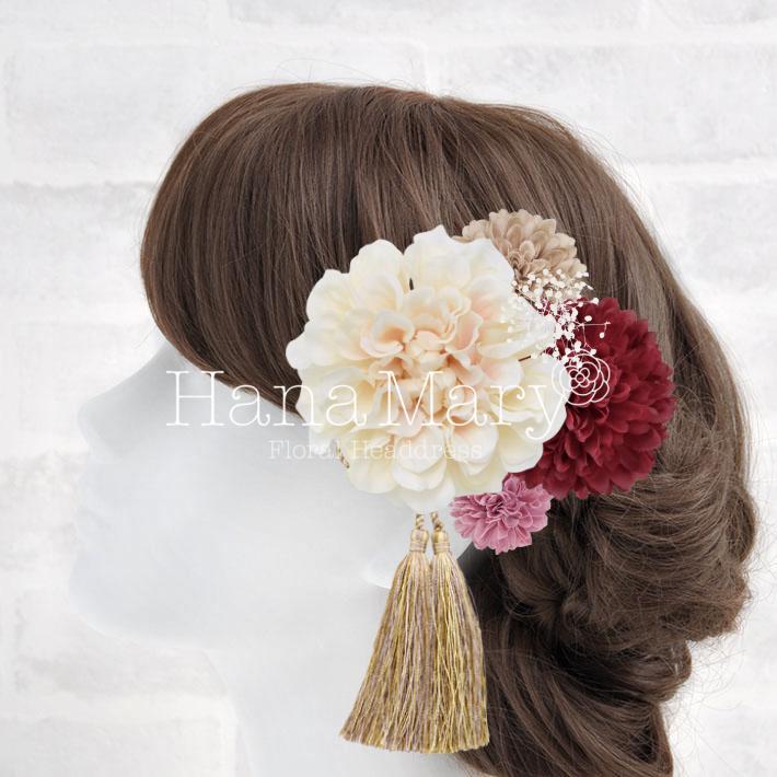 HanaMaryの髪飾りは生花をリアルに再現したアートフラワーと呼ばれるハイクオリティーな造花を使用しています。耐久性に優れ、成人式・卒業式やウェディングなどに何度でも繰り返し使用することができます。