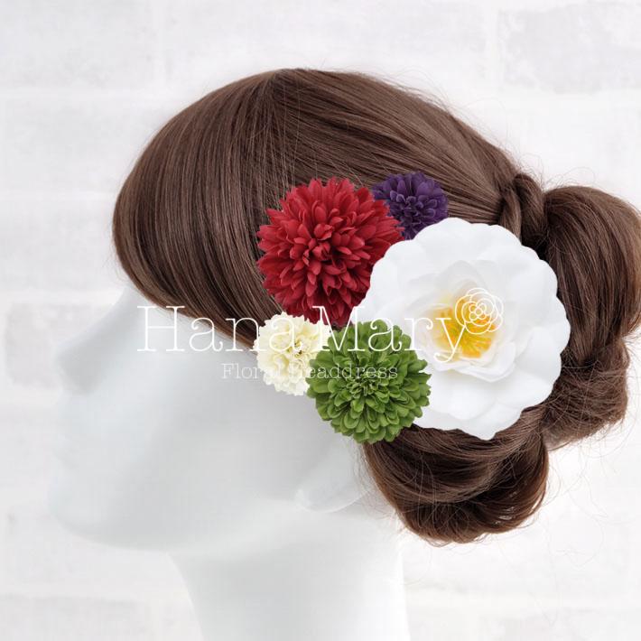 その日のヘアスタイルによって自由に一輪一輪配置できます。お花の数が多い場合でも、アメピンを追加して簡単にしっかりと固定できます。