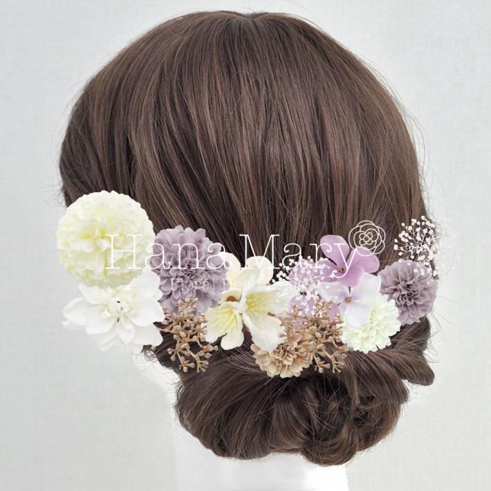 その日のヘアスタイルによって自由に一輪一輪配置できます。お花の数が多い場合でも、アメピンを追加して簡単にしっかりと固定できます。