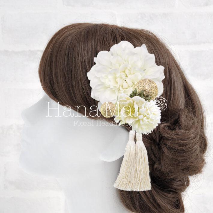 HanaMaryの髪飾りは生花をリアルに再現したアートフラワーと呼ばれるハイクオリティーな造花を使用しています。耐久性に優れ、成人式・卒業式やウェディングなどに何度でも繰り返し使用することができます。