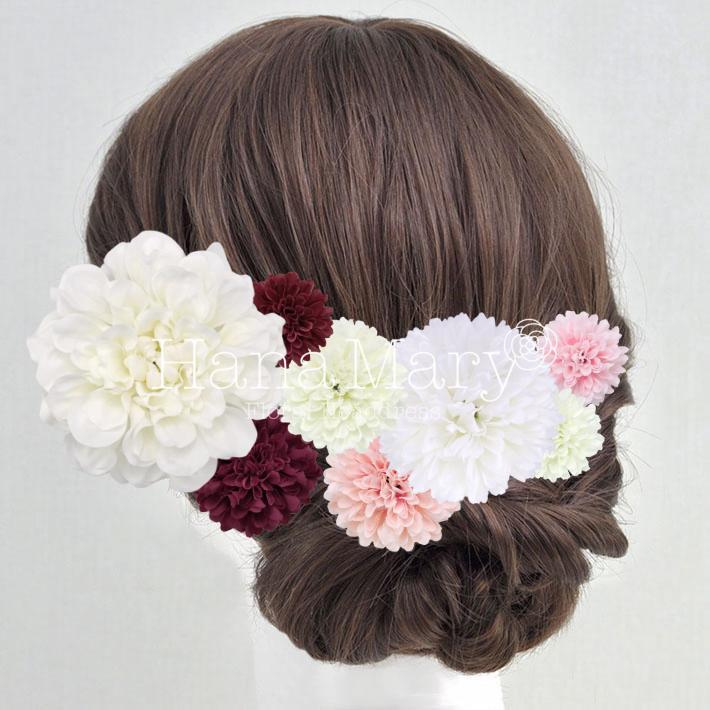 その日のヘアスタイルによって自由に一輪一輪配置できます。お花の数が多い場合でも、アメピンを追加して簡単にしっかりと固定できます。