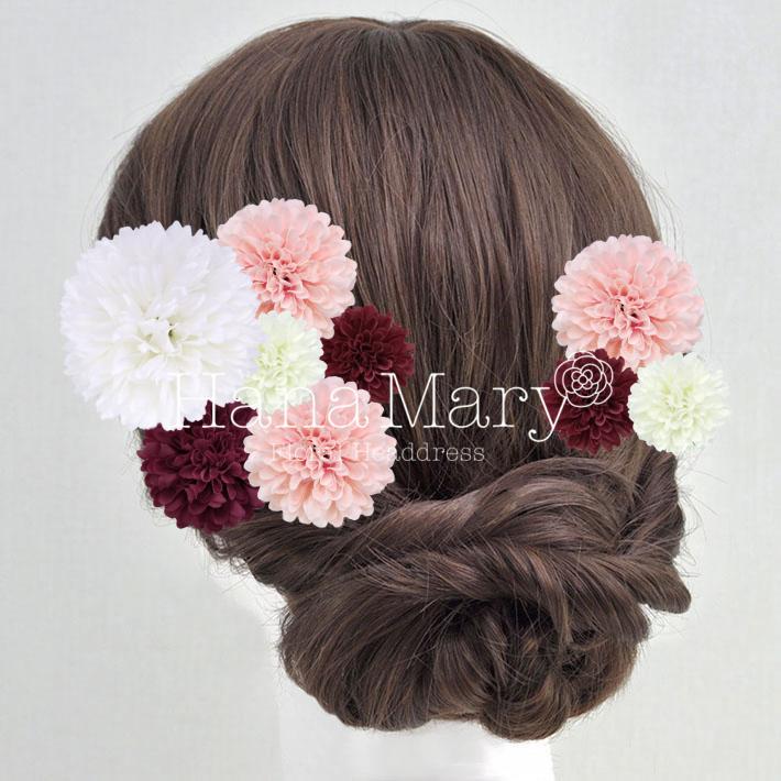 その日のヘアスタイルによって自由に一輪一輪配置できます。お花の数が多い場合でも、アメピンを追加して簡単にしっかりと固定できます。