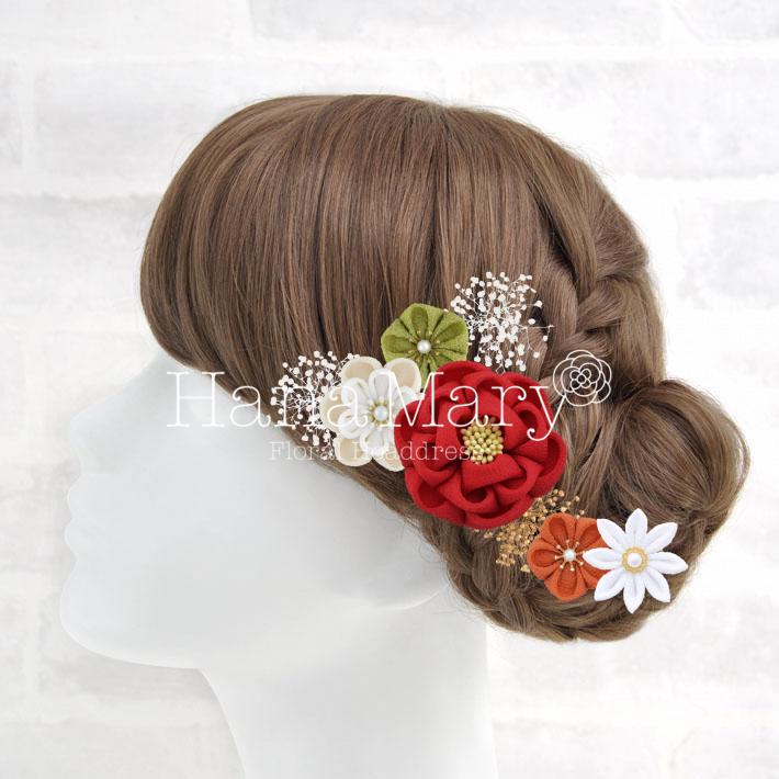 HanaMaryの髪飾りは生花をリアルに再現したアートフラワーと呼ばれるハイクオリティーな造花を使用しています。耐久性に優れ、成人式・卒業式やウェディングなどに何度でも繰り返し使用することができます。