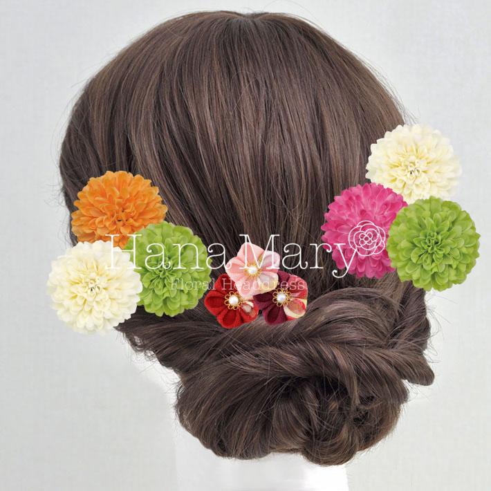 その日のヘアスタイルによって自由に一輪一輪配置できます。お花の数が多い場合でも、アメピンを追加して簡単にしっかりと固定できます。