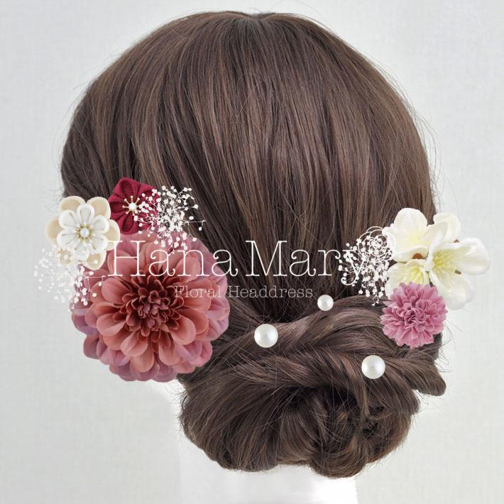 HanaMaryの髪飾りは生花をリアルに再現したアートフラワーと呼ばれるハイクオリティーな造花を使用しています。耐久性に優れ、成人式・卒業式やウェディングなどに何度でも繰り返し使用することができます。